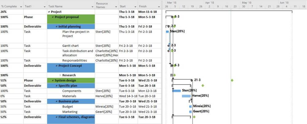 • 2018-03-05 Define the Tasks (what must be done - every member should preferably participate in every task), subtask allocation (who does what) and Gantt chart (when) of the project and insert them on the wiki (planning)